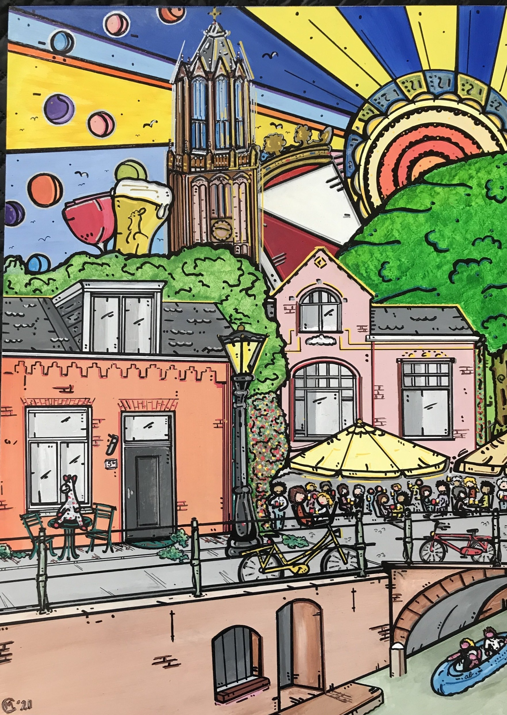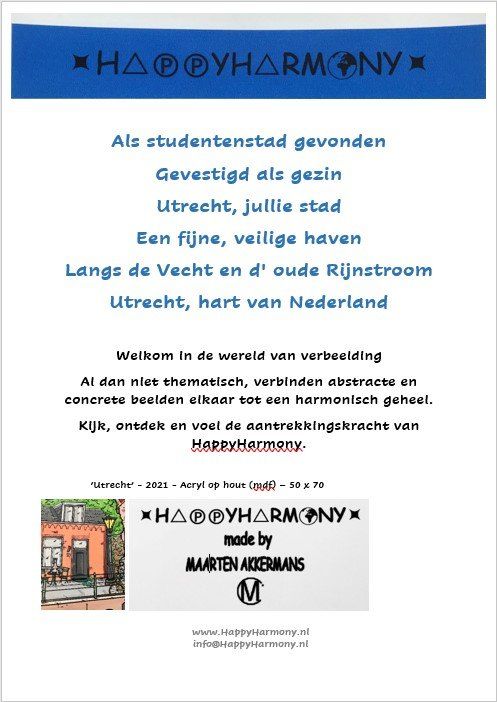 Na een radiostilte van ruim tien jaar, besloot ik in 2019 HappyHarmony nieuw leven in te blazen en de kwast en de acryl weer uit de kast te halen. Dit resulteerde al snel in een eerste schilderij. Eind 2020 kreeg ik een supertoffe opdracht. Dit is het schilderij 'Utrecht' geworden. Beide werken kun je hieronder in de collectie bekijken.