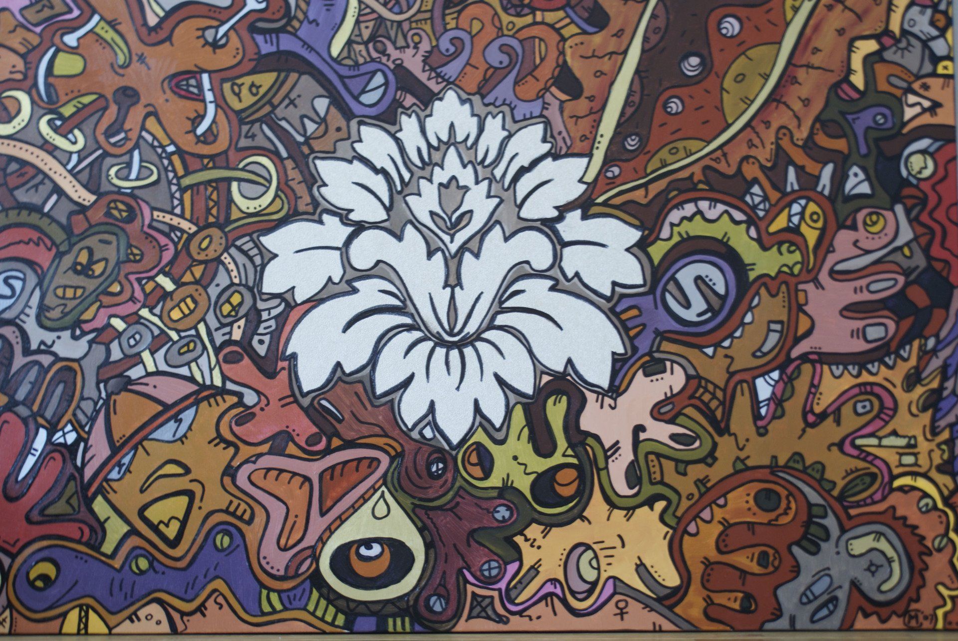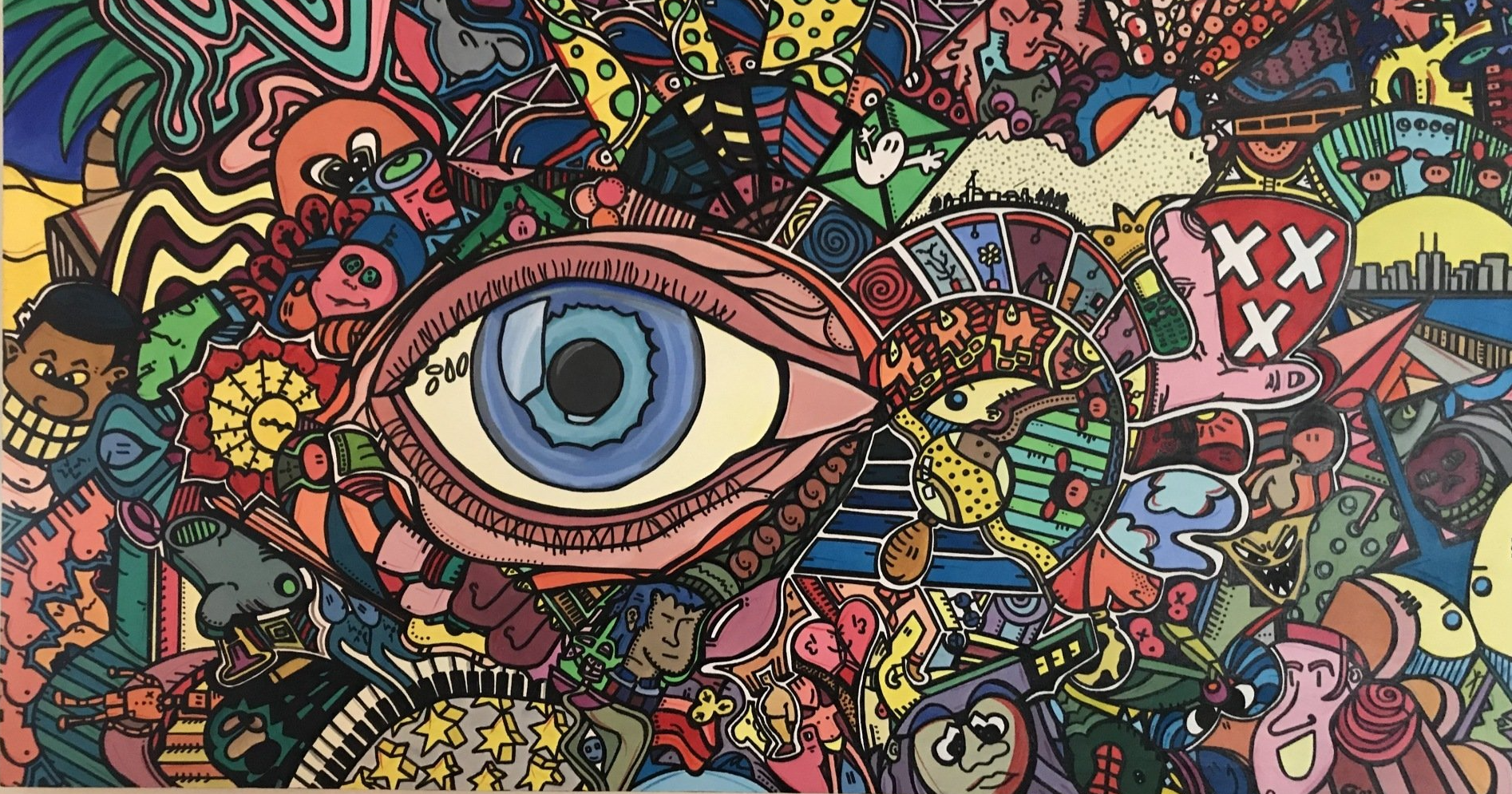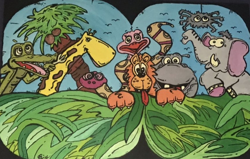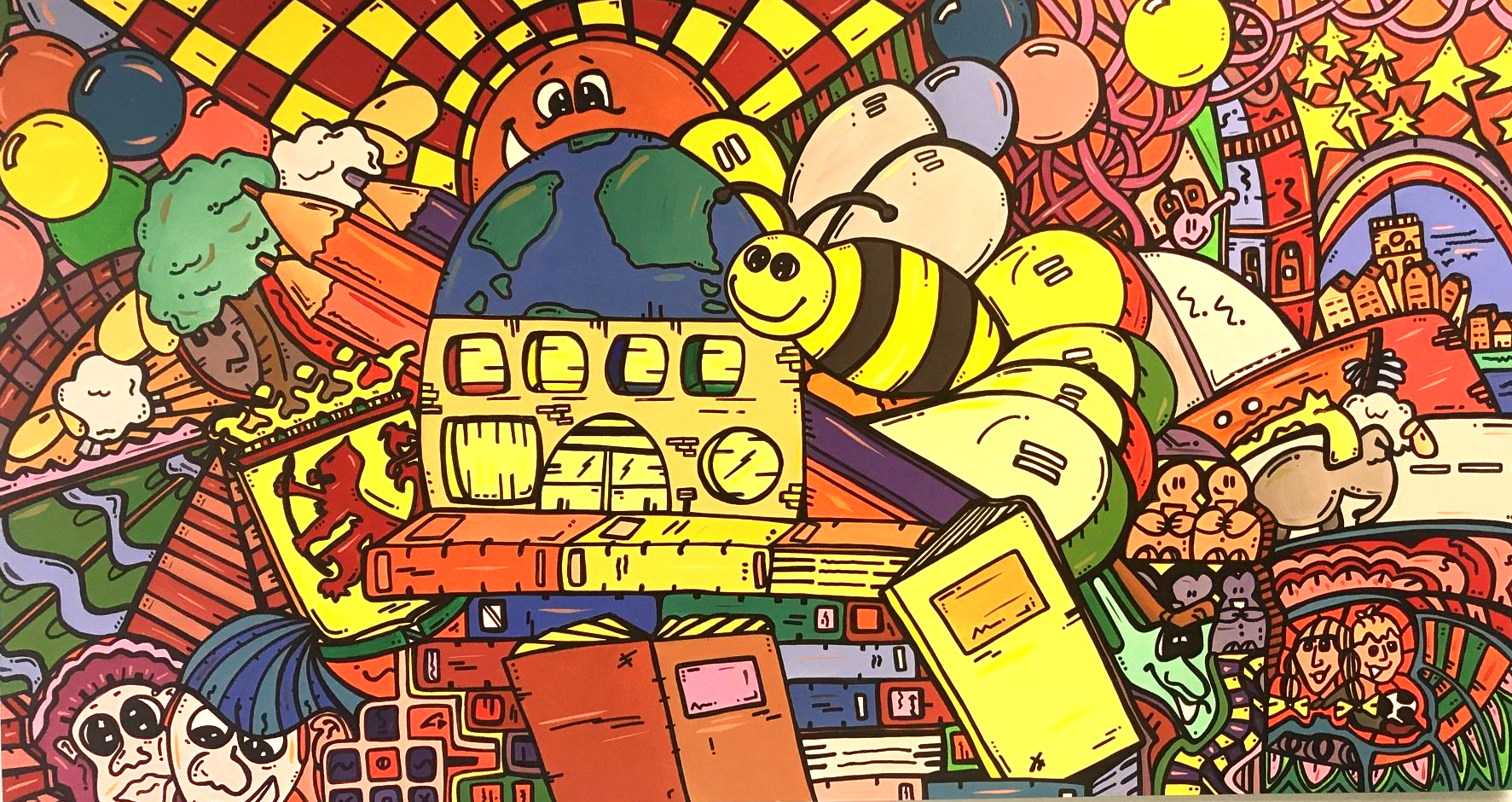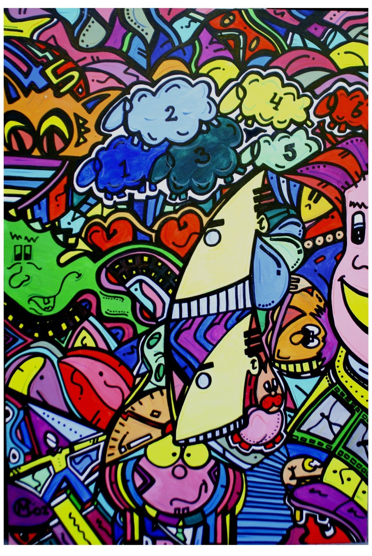 Van kleins af aan heb ik heel wat kilometers getekend en geschilderd. Op mijn zolderkamer had ik een behoorlijke grote witte, schuine wand. Ik zou en moest er iets mee. Onder het genot van melodische trancemuziek, ben ik zonder voorbeeld aan de slag gegaan. Puur op fantasie, het gevoel van dat moment, opgezweept door heerlijke muziek. Als uit een stift getoverd, was HappyHarmony geboren.